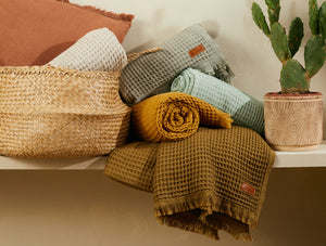 The Oscar Plaid 120x180 cm is your ideal ally for summer or spring evenings. Its embossed honeycomb weave offers a soft, lightweight feel.